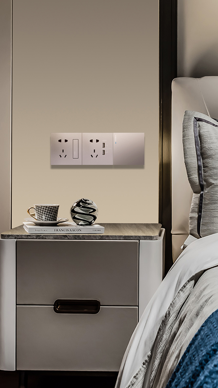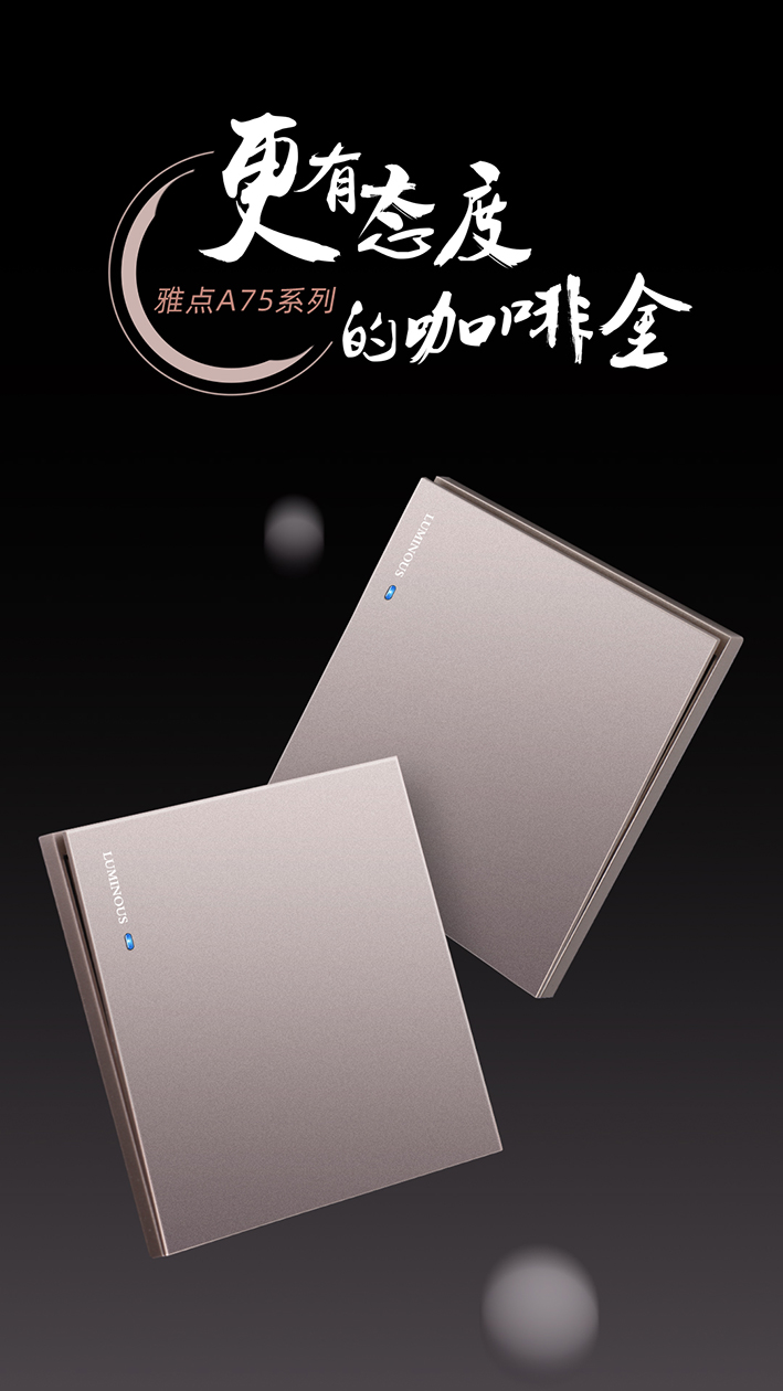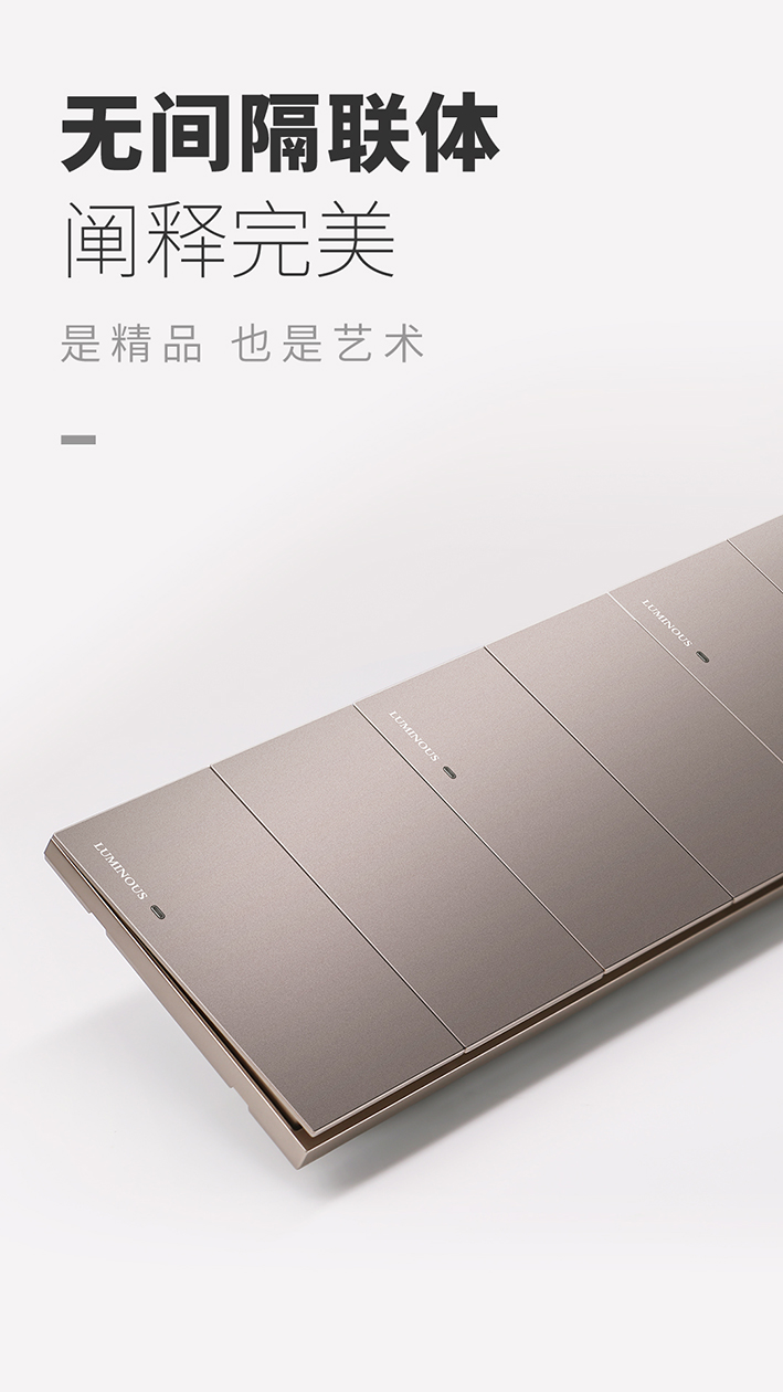 咖啡金系列保留了A75系列“无间隔大面板联体”的优点,在美观性和实用性上可谓是完美平衡,安装在墙面,仿佛多了一块块艺术珍宝。