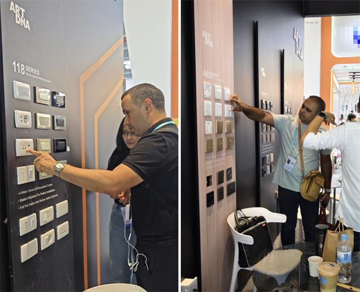 本次广交会雅点ARTDNA展出了墙壁开关插座、智能开关插座及专利型的反出光灯饰产品,这些产品都受到了各国客户的青睐。雅点接待来自全球各地区客户超过300名,其中部分为国际集团客户。