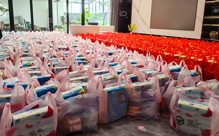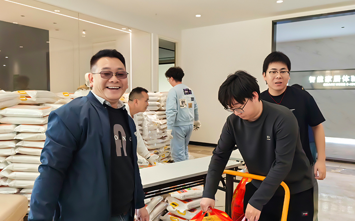 2月2日,中山市家的电器有限公司为全体员工精心准备了丰厚的春节福利。一袋袋优质大米、一桶桶食用油、一瓶瓶洗衣液以及各式各样的零食大礼包整齐摆放,承载着公司对员工们一年辛勤付出的诚挚感谢。