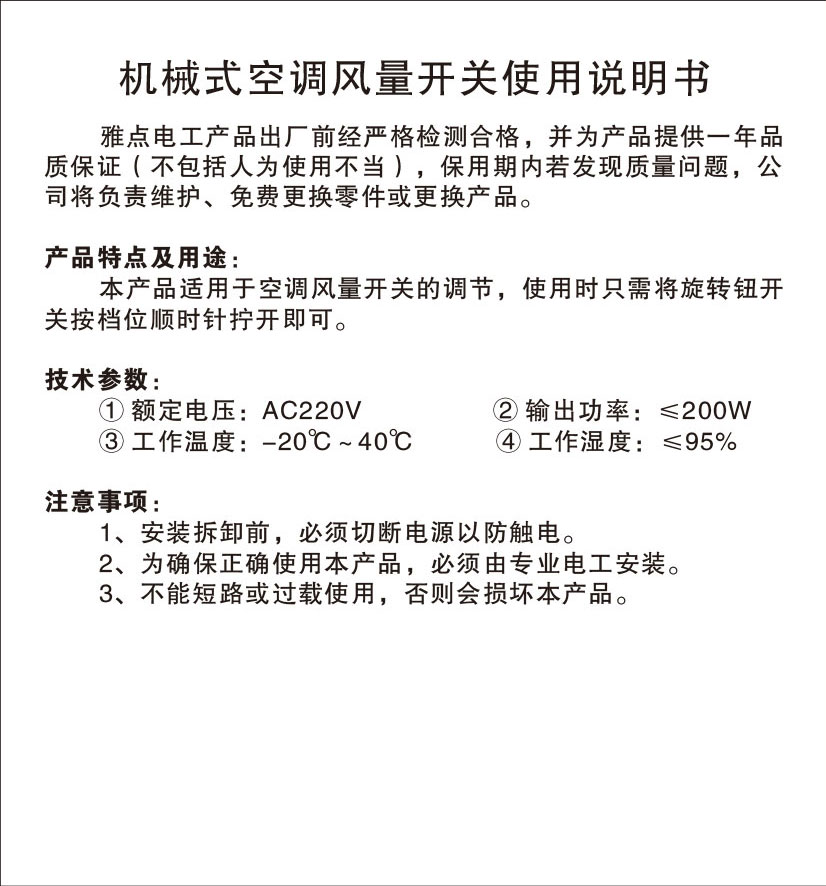 机械式空调风量开关
