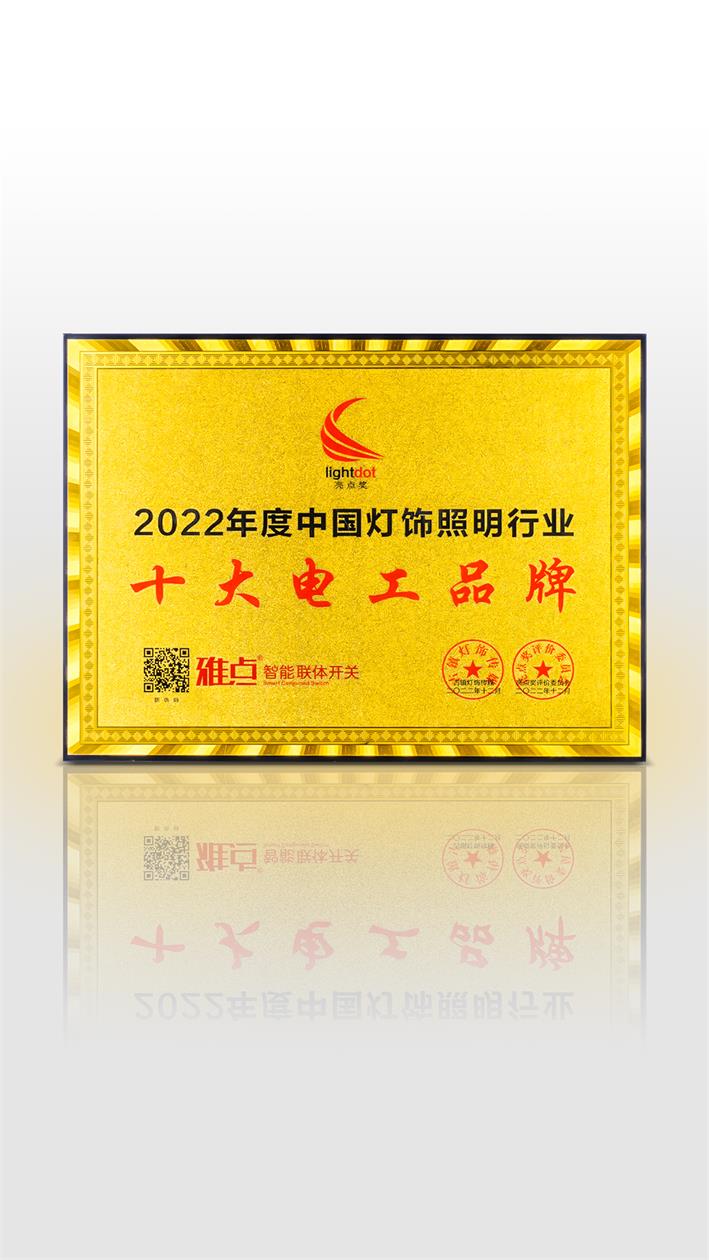 “亮点奖”自荐申报企业有725家,最终进入候选名单的企业共计353家。雅点凭实力脱颖而出,获得“2022中国灯饰照明行业年度营销人”以及“2022中国灯饰照明行业十大电工品牌”荣誉。