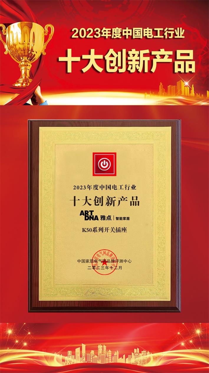 雅点获得的3大荣誉分别是:2023年度中国电工行业“十大知名品牌”、“消费者信赖品牌”、“十大创新产品”。